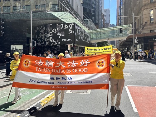 This event was one of the three-day activities which were part of the 2025 Australian Falun Dafa Cultivation Experience Sharing Conference. The march started from Martin Place. Falun Dafa practitioners of various ethnicities carried banners and flags and demonstrated the exercises.
