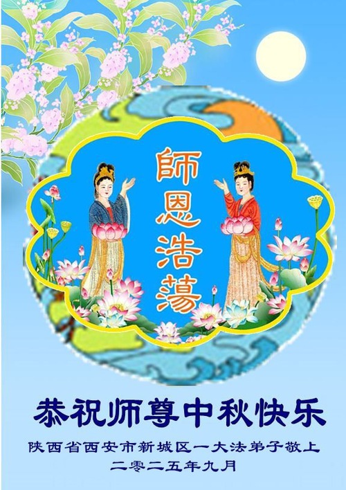 Falun Dafa Practitioners from Xi’an City Respectfully Wish Master Li Hongzhi a Happy Mid-Autumn Festival (18 Greetings)