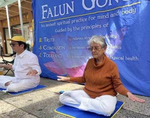 Event moderator Cassy Burgess introduced Falun Dafa and said it’s a peaceful practice whose guiding principles are Truthfulness, Compassion, and Forbearance, and practitioners practice five slow-moving exercises. Practicing Falun Dafa brings one inner peace, balance, and physical health. “I believe that in modern life, we need this kind of tranquility and balance even more. Please enjoy their wonderful performance,” she said