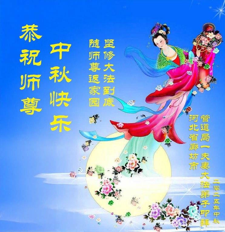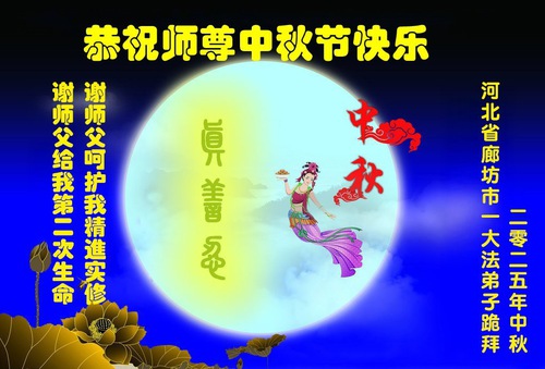 Falun Dafa Practitioners in Langfang City Respectfully Wish Master Li Hongzhi a Happy Mid-Autumn Festival (19 Greetings)