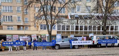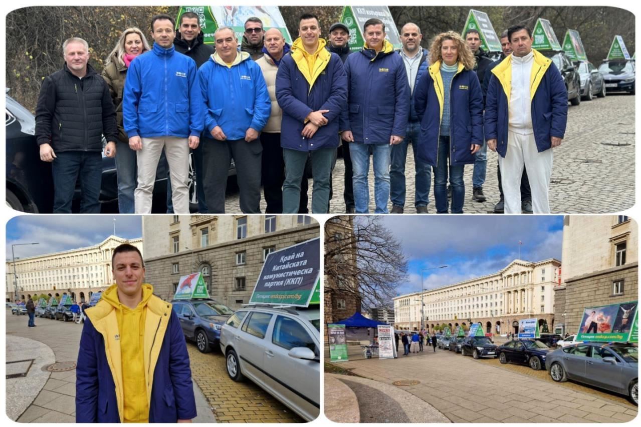 The banners on the cars, written in Bulgarian, included the following messages: “The CCP Uses Torture and Murder to Destroy Falun Gong,” “The CCP Is Carrying Out Large-Scale Medical Genocide,” “The CCP’s Goal Is World Domination. Enslavement and Plunder, Disguised as Investment,” “The CCP Harvests Organs From Falun Dafa Practitioners,” “To Stop the Killings—End the CCP!”