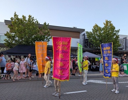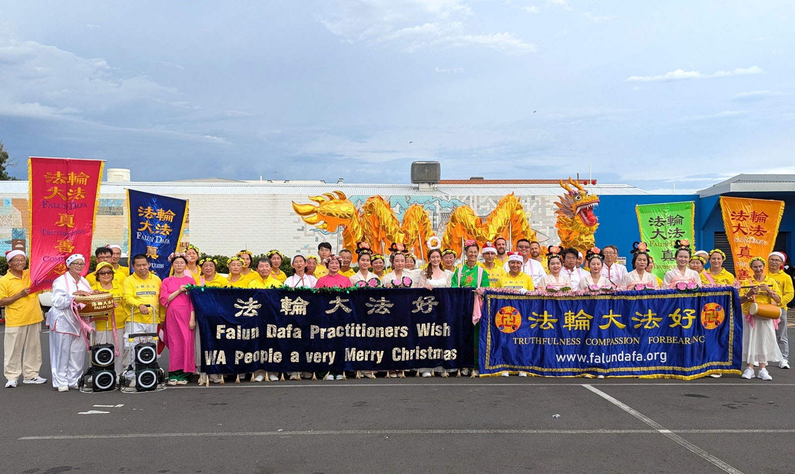 (Minghui.org) Falun Dafa practitioners in Western Australia participated in two Christmas Parades at the end of 2025. They set up a booth and participated in the Parade in Ellenbrook on December 13. The next day they joined the parade in Bunbury, in which they won the first place in the Walking Group category.
