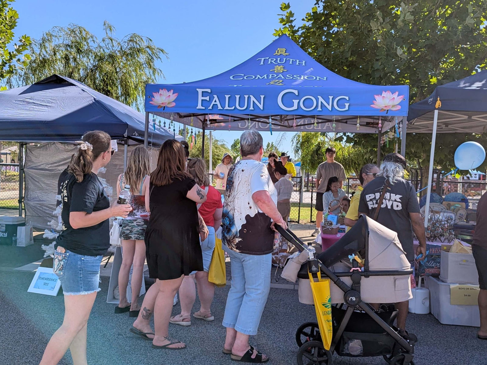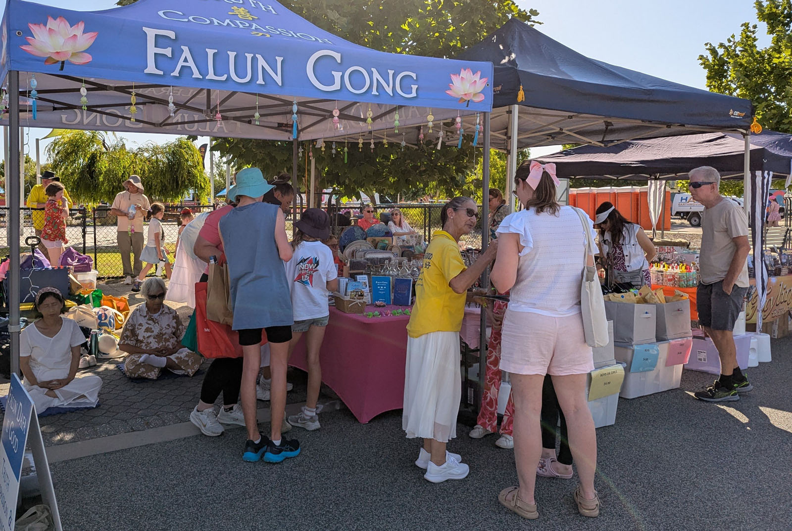 Practitioners had a booth at a Christmas festival in Ellenbrook in Western Australia on December 13, 2025. They told people about Falun Dafa and the ongoing persecution in China.