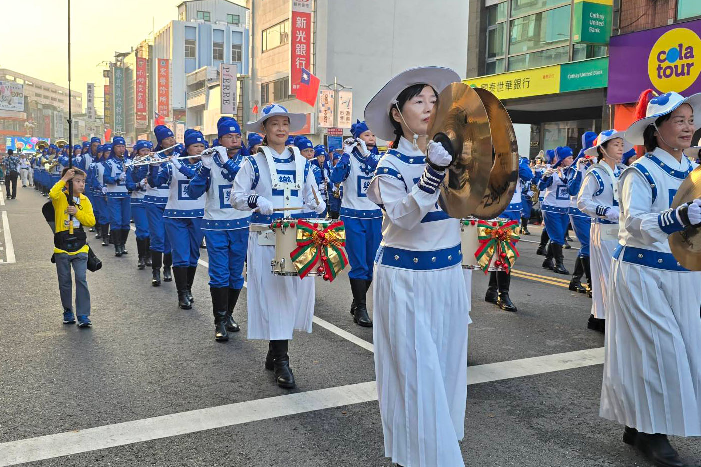 (Minghui.org) The Tian Guo Marching Band made another memorable appearance at the 33rd Chiayi City International Band Festival on Saturday, December 20, 2025. The band has participated in the event for more than a decade. This year, the Tian Guo Marching Band was made up of more than 200 Falun Dafa practitioners from all parts of Taiwan, and they were once again a highlight of the festival.