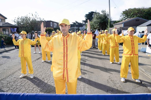 (Minghui.org) Falun Gong practitioners participated in the 38th Fog Fest Parade in Pacifica City, San Francisco, on September 27, 2025. Congressman Sam Liccardo attended the parade said it was wonderful that practitioners were involved in this important community event. Pacifica City Council Member Mary Bier said the principles taught by Falun Gong—Truthfulness, Compassion, and Forbearance—are extremely important to society.