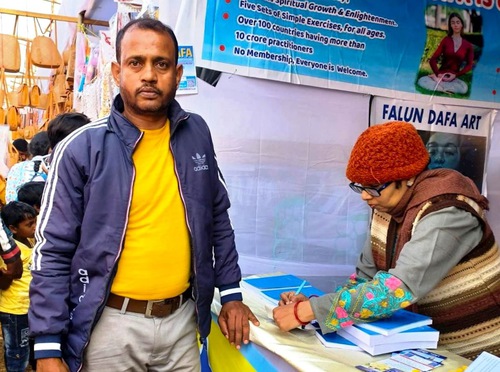 With India’s rich history of yoga and meditation, many visitors were drawn to Falun Dafa as a new school of meditation, and they wanted to learn more. Some wanted to know how Falun Dafa could expand upon the calming and restful effects of other meditation. Nizamuddin Mollah, a businessman, said that he had practiced different meditation ways before. He purchased Zhuan Falun because he felt practicing Falun Dafa would make him even “more calm and balanced.”
