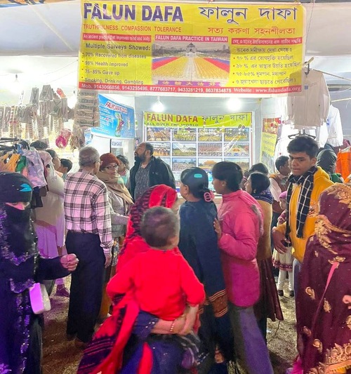 A relative in Santiniketan suggested that with so many people coming to the Poush Mela, it would be a good opportunity to introduce Falun Dafa. Sinha lost no time in making the arrangements. On the first day of the fair, she said she made the right decision when she saw people coming to the booth on their own and wanting to know about Falun Dafa.