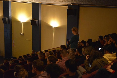 Audience member asks questions after the film screening.