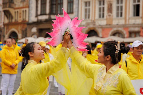 During his speech at Old Town Square after the parade, Mr. Strnad stressed, “There are things that concern all of us, whether we admit it or not. When people are persecuted purely for their belief in the values of Truthfulness, Compassion, and Forbearance, it is not only an attack on them—it is an attack on humanity as a whole. If we remain silent and pretend not to see these crimes, what kind of society are we becoming?”