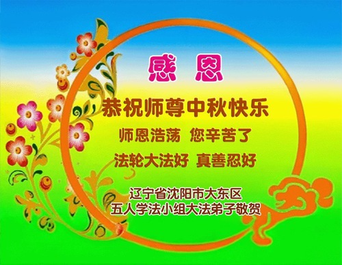 Falun Dafa Practitioners in Shenyang City Respectfully Wish Master Li Hongzhi a Happy Mid-Autumn Festival (18 Greetings)