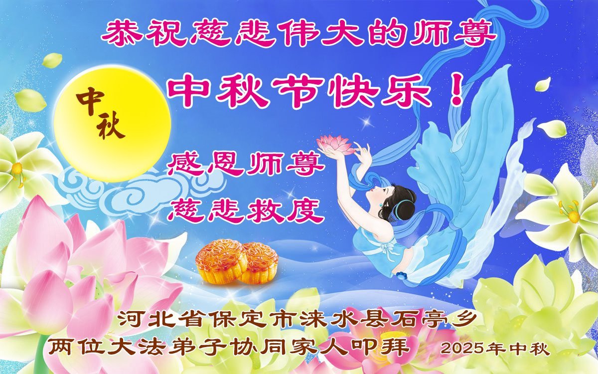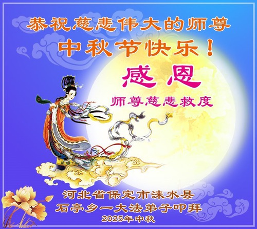 Falun Dafa Practitioners in Baoding City Respectfully Wish Master Li Hongzhi a Happy Mid-Autumn Festival (19 Greetings)
