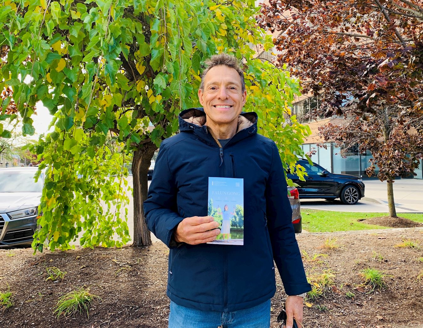 A practitioner told Tony that the band’s members are all Falun Gong practitioners. In answer to Tony’s question, the practitioner explained that Falun Gong practice sites are now widespread throughout the world, and that practitioners adhere to the principles of Truthfulness, Compassion, and Forbearance. The practitioner recommended an online exercise website. Tony said he was pleased to get this information, accepted a flyer, and thanked the practitioner.