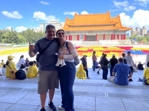 Arturo from Spain is a martial arts enthusiast and was in Taiwan for a competition. He was practicing next to Liberty Square as practitioners formed the characters. He said it was a grand sight to see with so many people involved in the activity. Because he practices martial arts, he knows it needs strong determination to sit under the hot sun for two hours. He witnessed practitioners’ resilience and said he a had a lot of respect for them. Arturo laments that people’s hearts are turning bad in today’s world, and feels social media has exacerbated the situation. He said the world needs Truthfulness, Compassion, Forbearance.