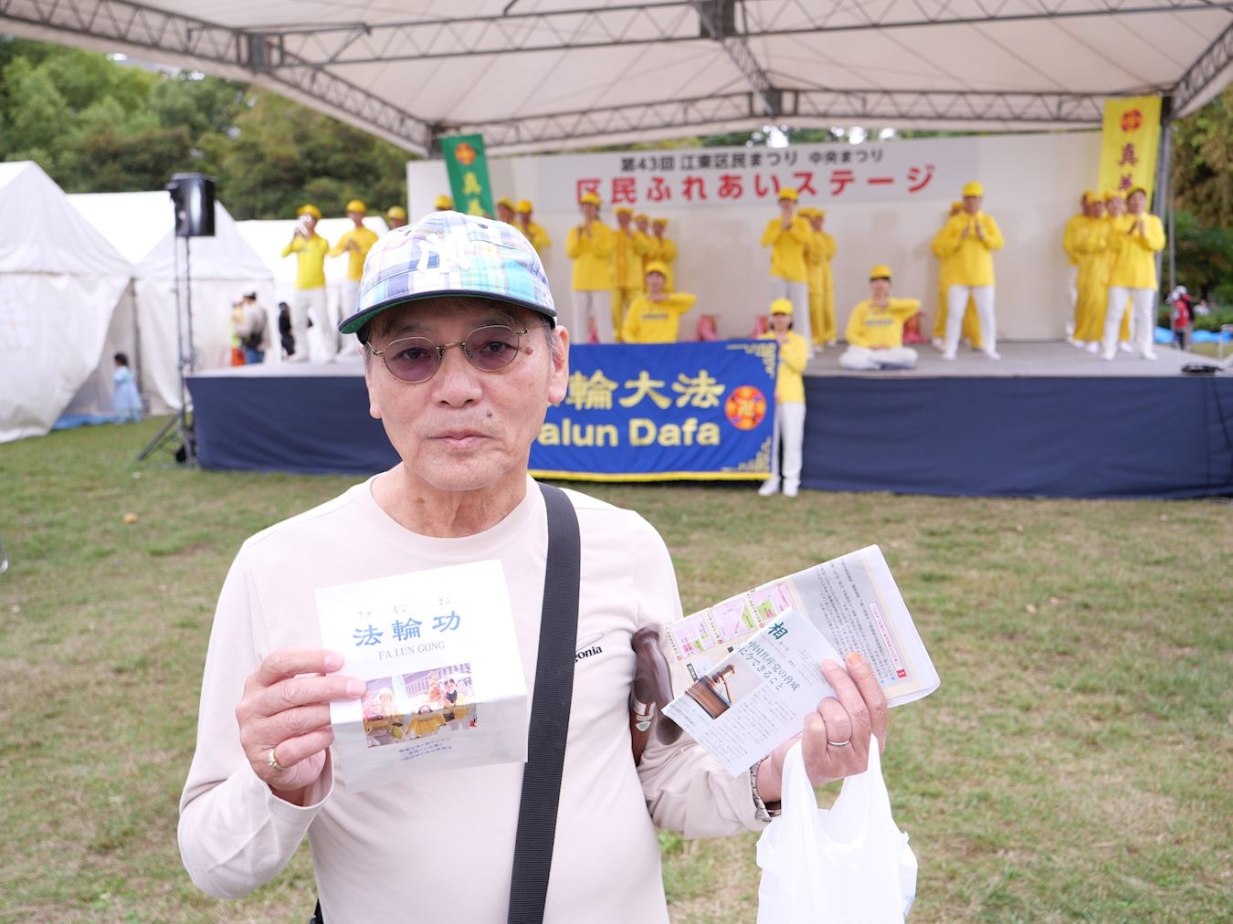 Falun Dafa practitioners told people they teach the exercises for free every morning in Metropolitan Kiba Park and every Sunday in Minamisuna 3-chōme Park.