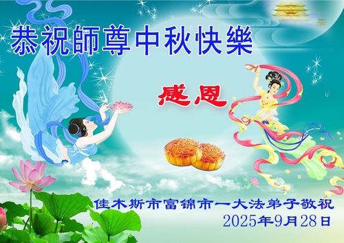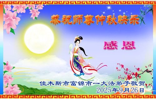 Falun Dafa Practitioners from Jiamusi City Respectfully Wish Master Li Hongzhi a Happy Mid-Autumn Festival (18 Greetings)