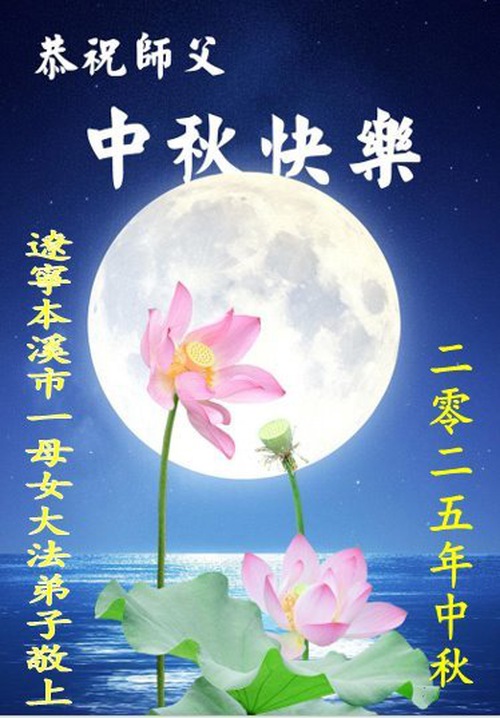 Falun Dafa Practitioners from Benxi City Respectfully Wish Master Li Hongzhi a Happy Mid-Autumn Festival (18 Greetings)