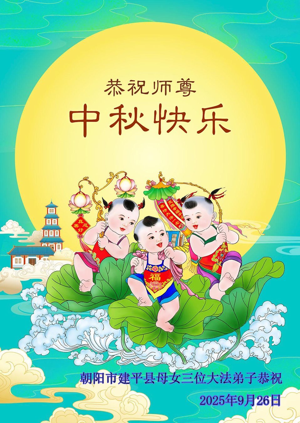 Falun Dafa Practitioners from Chaoyang City Respectfully Wish Master Li Hongzhi a Happy Mid-Autumn Festival (18 Greetings)