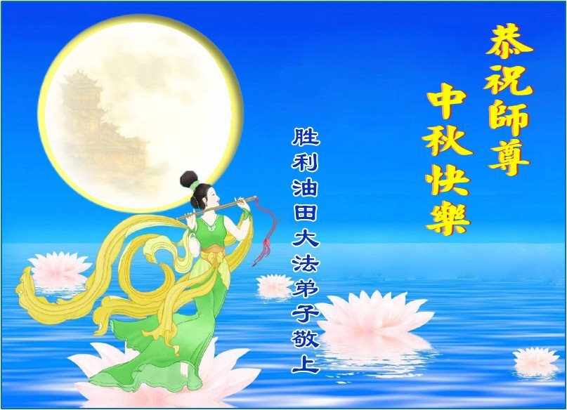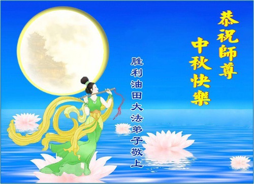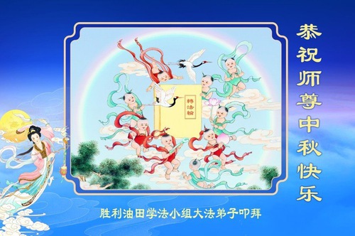 Practitioners in Dongying City and Shengli Oilfield in Shandong Province wish Master a happy Mid-Autumn Festival. The greeting reads: “With the coming of the Mid-Autumn Festival, we disciples are grateful for Master’s boundless compassion. We will follow Master’s teachings and treasure more this precious opportunity. We will move forward with righteous thoughts and walk well the final leg of the journey courageously and diligently.”