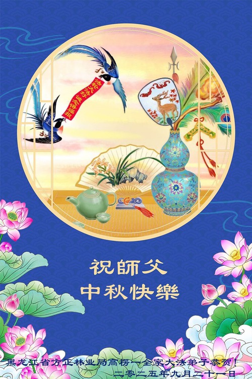 (Minghui.org) To celebrate another the 2025 Mid-Autumn Festival, Falun Dafa practitioners from around the world have submitted greetings to Minghui.org, celebrating this tradition and extending their best wishes to Mr. Li Hongzhi, the founder of Falun Dafa.