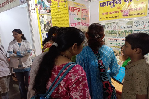(Minghui.org) Falun Dafa practitioners from Nagpur, India participated in the Gramayan Abhyuday Sewa Exhibition at Taya Hope Hall on September 12-14, 2025, to introduce Falun Dafa. They set up a booth to introduce the practice to visitors from different walks of life, and inform people about the ongoing persecution in China.