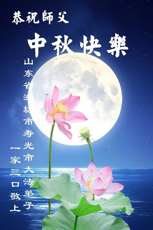 Falun Dafa Practitioners in Jinan, Linyi and Weifang Cities Respectfully Wish Master Li Hongzhi a Happy Mid-Autumn Festival (128 Greetings)