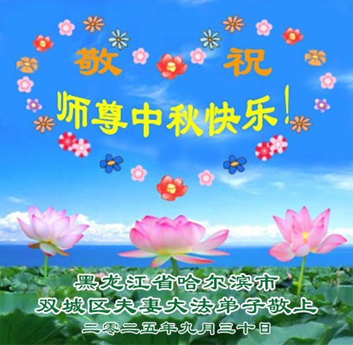 Falun Dafa Practitioners in Harbin and Daqing Respectfully Wish Master Li Hongzhi a Happy Mid-Autumn Festival (105 Greetings)