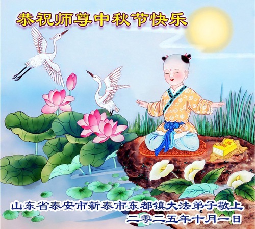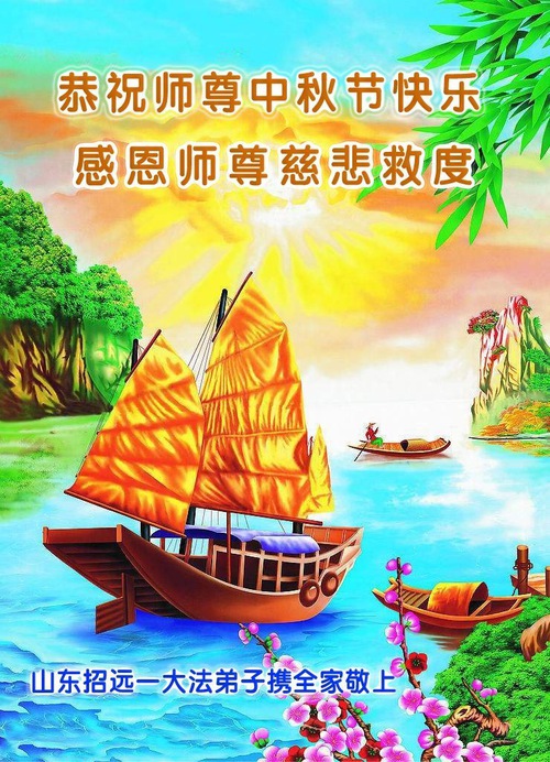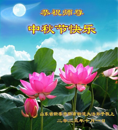 Falun Dafa Practitioners from Cities/Towns/Areas of Yantai, Zoucheng, Tai’an, Jining, Wish Revered Master a Happy Mid-Autumn Festival!