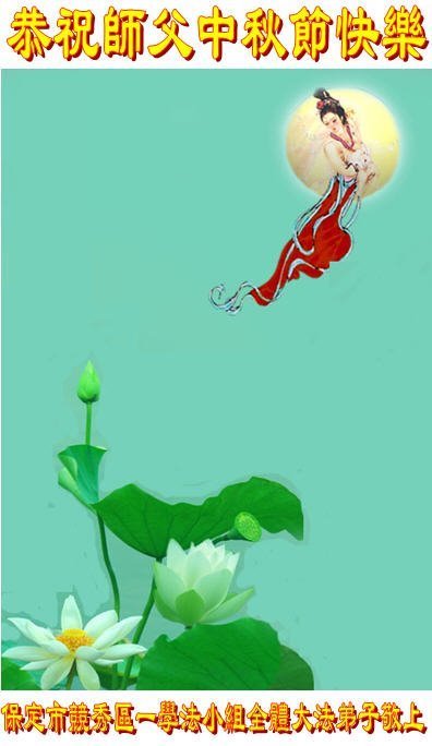 Falun Dafa Practitioners from Cities/Towns/Areas of Cangzhou, Handan, Mancheng, Baoding, in Hebei Province Wish Revered Master a Happy Mid-Autumn Festival!