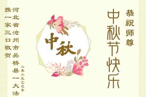 Falun Dafa Practitioners from Cities/Towns/Areas of Cangzhou, Handan, Hengshui, in Hebei Province Wish Revered Master a Happy Mid-Autumn Festival!