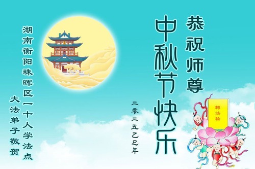 Falun Dafa Practitioners from Cities/Towns/Areas of Yueyang, Hengyang, Chenzhou, Yiyang, Shaoyang, Shaodong, Huaihua, in Hunan Province Wish Revered Master a Happy Mid-Autumn Festival!