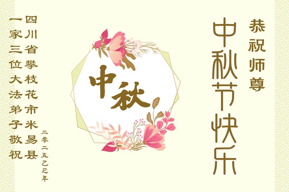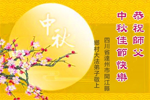 Falun Dafa Practitioners from Cities/Towns/Areas of Panzhihua, Dazhou, Shifang, and Deyang Wish Revered Master a Happy Mid-Autumn Festival!