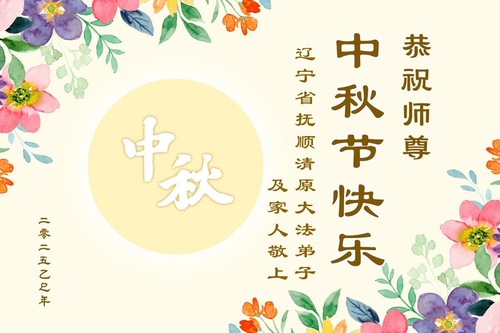 Falun Dafa Practitioners from Cities/Towns/Areas of Anshan, Fuxin, Liaoyang, and Fushun Wish Revered Master a Happy Mid-Autumn Festival!