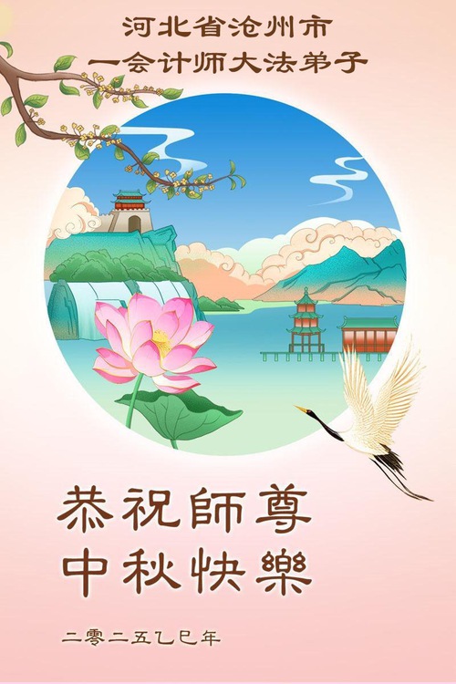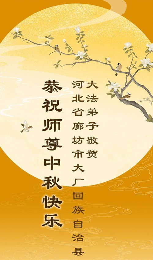 Practitioners in China’s financial system wish Master a happy Mid-Autumn Festival. Their greeting reads: “We are grateful for Master’s salvation. We will work hard to catch up with the progress of Fa-rectification, cultivate ourselves well, save more sentient beings, do the three things well, and follow Master to return to our true homes.”