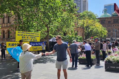 (Minghui.org) Falun Dafa practitioners held a rally in front of the Sydney Town Hall on September 28, 2025, to celebrate 450 million Chinese people quitting the Chinese Communist Party (CCP) and its affiliated youth organizations. Guests speakers commended the groundswell of withdrawals from the CCP, referring to those brave enough to withdraw from the CCP organizations as standing at the forefront of a future free China.