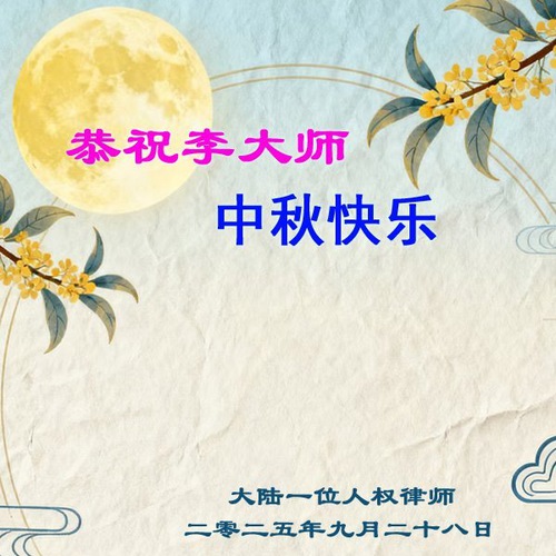 (Minghui.org) On the special occasion of the Mid-Autumn Festival (October 6, 2025), greetings poured in from supporters of Falun Dafa. They wished the founder, Master Li Hongzhi, a happy holiday and thanked him for the many blessings they have received.