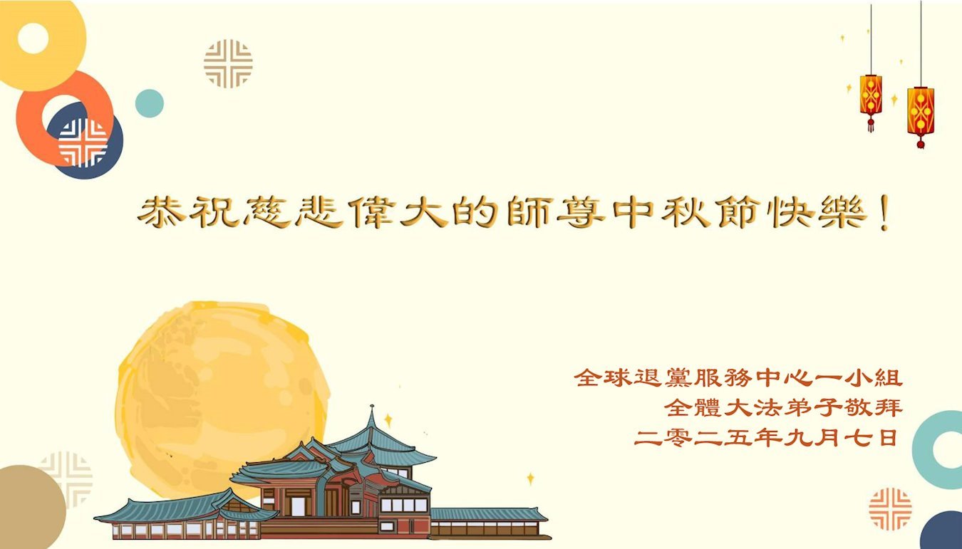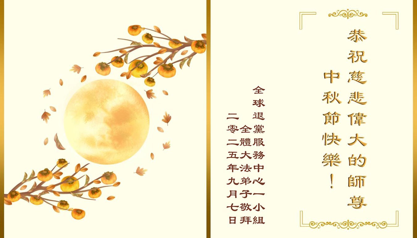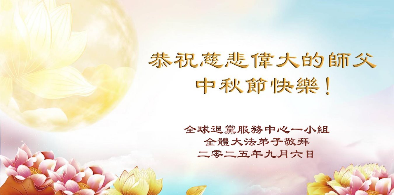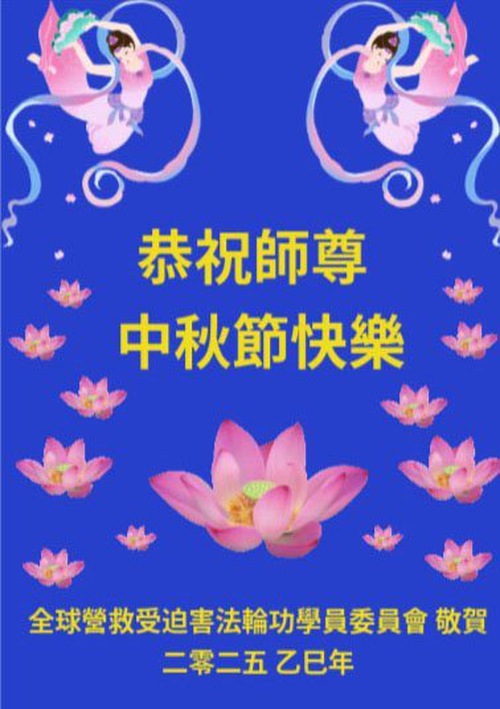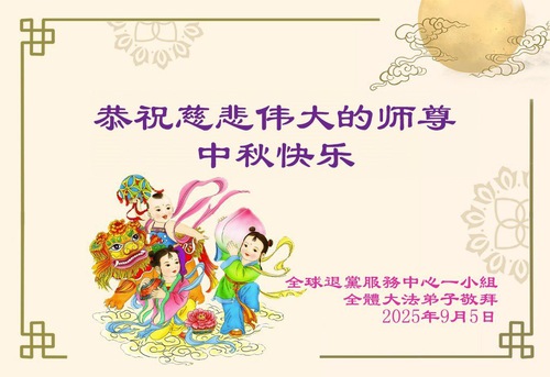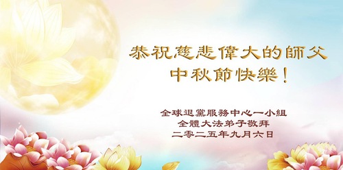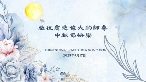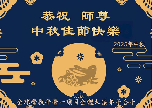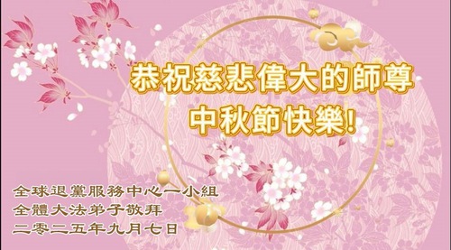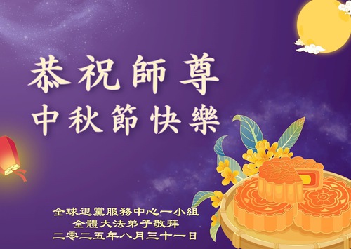 (Minghui.org) On the special occasion of the 2025 Mid-Autumn Festival, Falun Dafa practitioners are sending their most heartfelt greetings to the founder of the practice, Master Li Hongzhi.