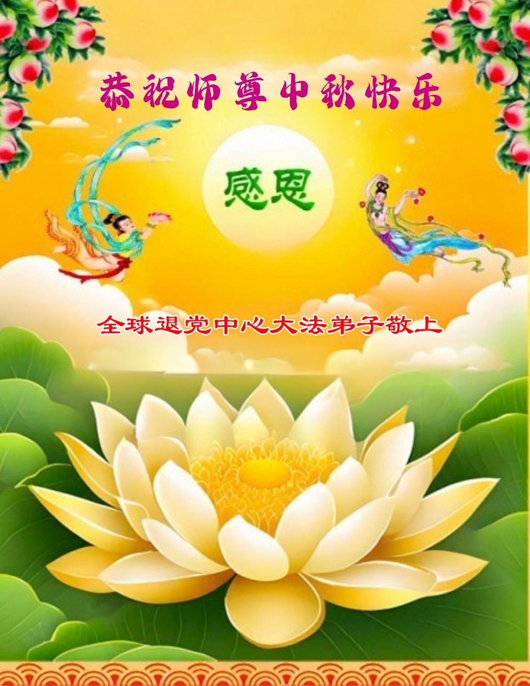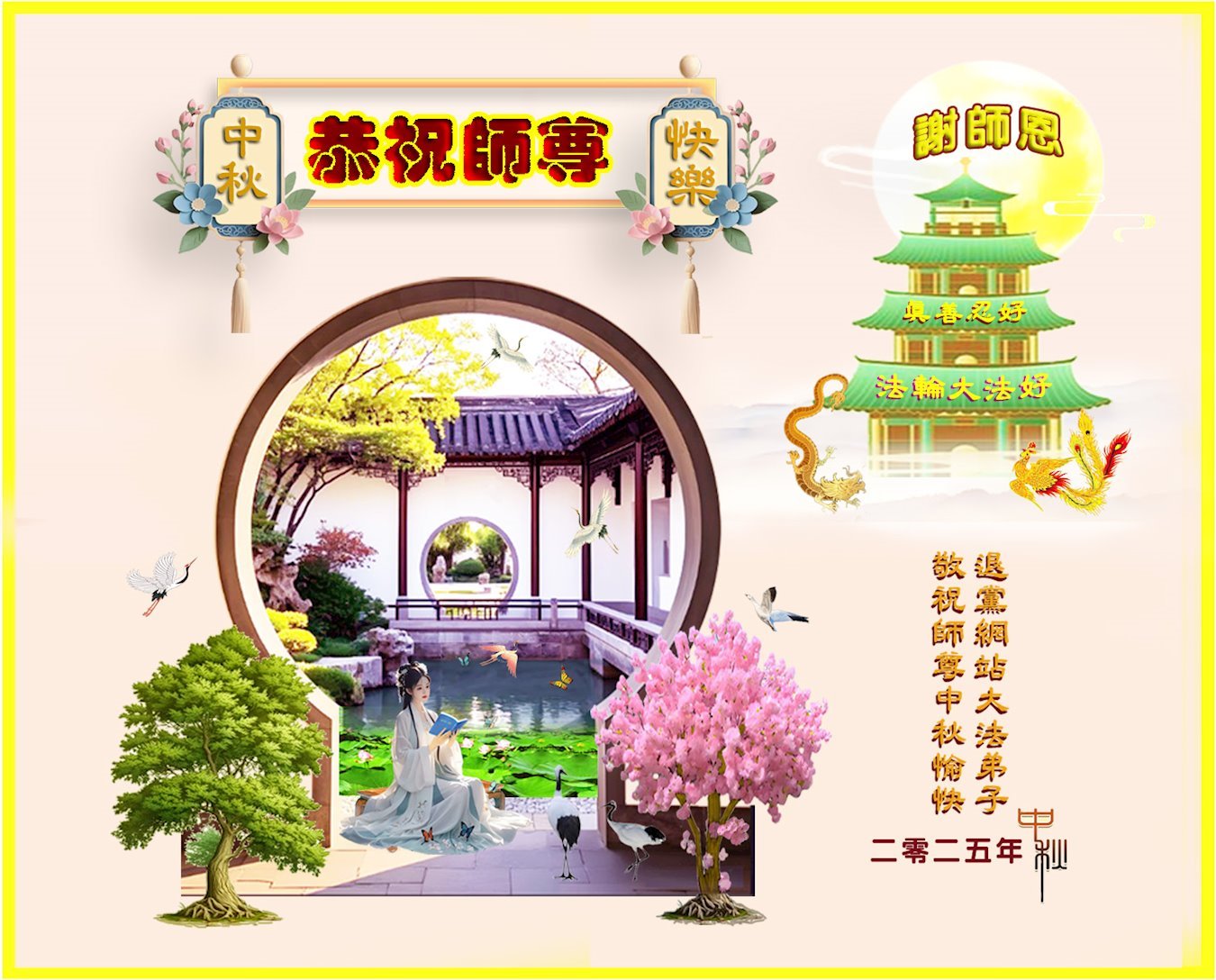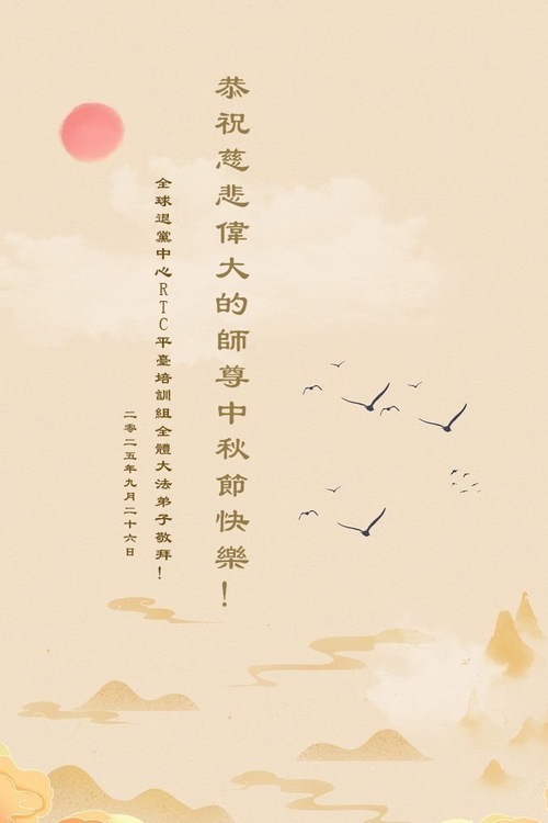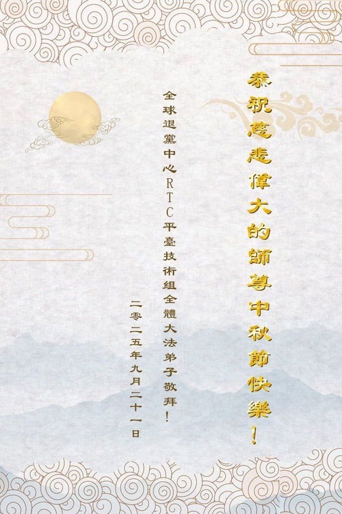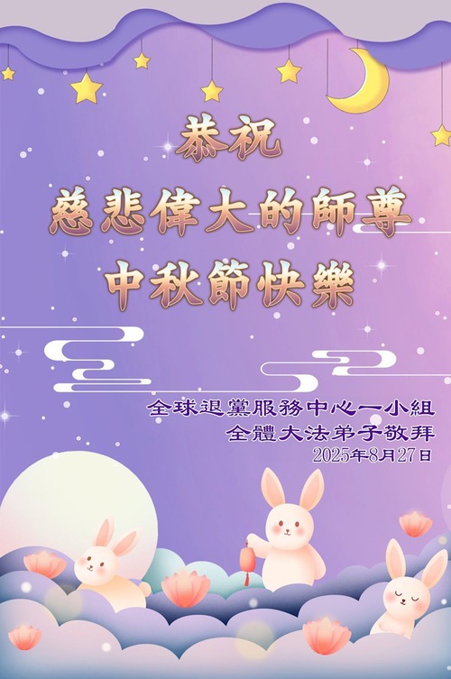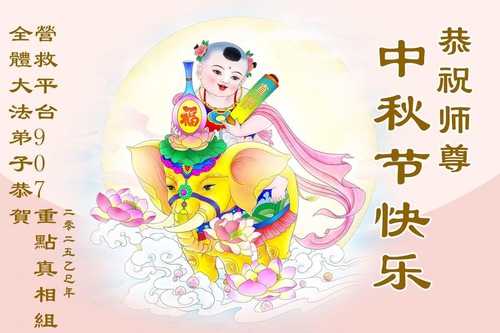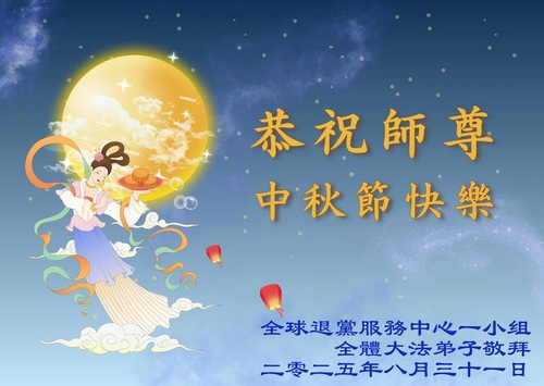 (Minghui.org) On the special occasion of the 2025 Mid-Autumn Festival, Falun Dafa practitioners are sending their most heartfelt greetings to the founder of the practice, Master Li Hongzhi.