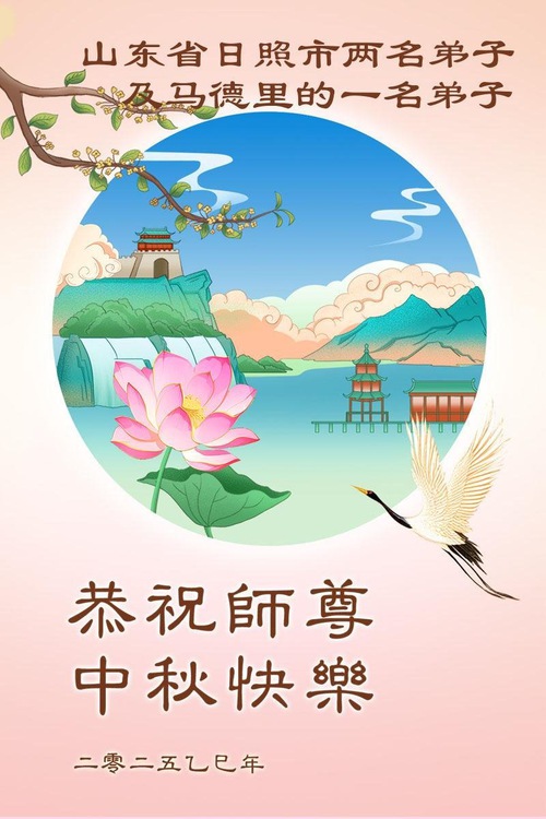 One Practitioner in Madrid, Spain and Two Practitioners in Rizhao, Shandong Province of China Wish Master a Happy Mid-Autumn Festival!