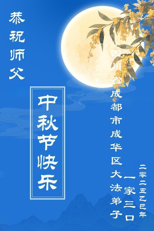 Falun Dafa Practitioners from Chengdu City Wish Revered Master a Happy Mid-Autumn Festival!