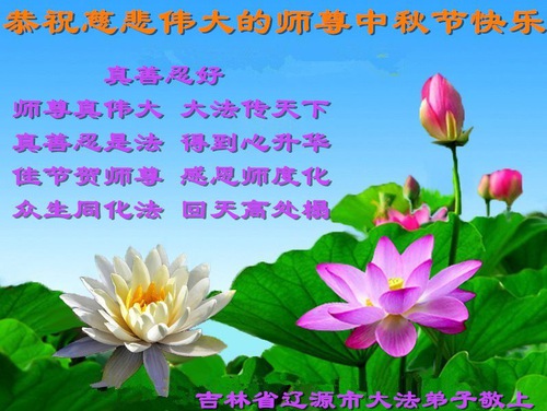 Falun Dafa Practitioners from Huadian City, Shulan City, Baicheng City, and Liaoyuan City Wish Revered Master a Happy Mid-Autumn Festival!