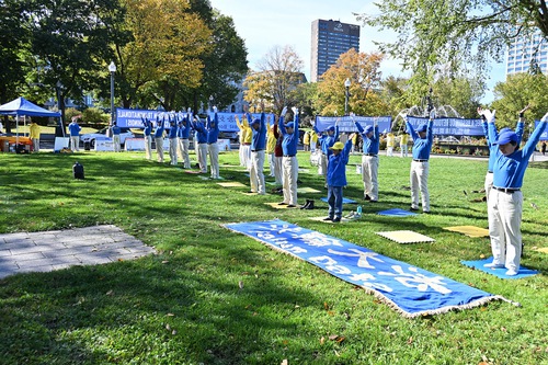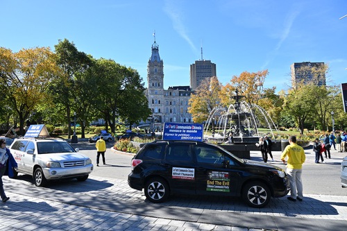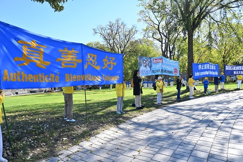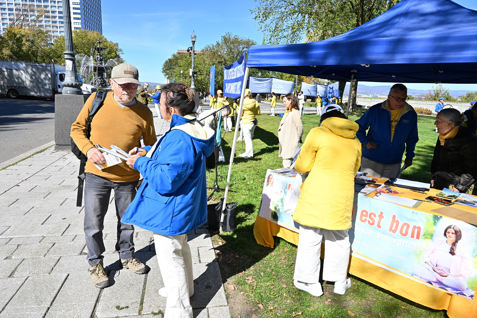 (Minghui.org) Canadian practitioners in Quebec City held an event at the National Assembly Square on October 2 to raise awareness of the Chinese Communist Party’s (CCP) transnational repression of Falun Dafa. The Square is also home to the Parliament Building of Quebec, and lawmakers were in session during the event.