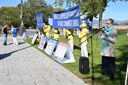 Nicole Milot, the president for the Falun Dafa Association of Quebec, spoke during the event. She explained the serious situation of transnational repression in Quebec by the CCP against Falun Dafa practitioners.