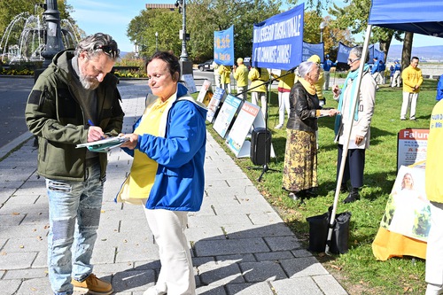 In recent years the CCP ramped up its efforts to silence practitioners outside China through propaganda attacks, threats of violence, vandalism, physical harm, and other means. Many passersby were angered when they were told about this and said they were happy to help practitioners by signing the petition.