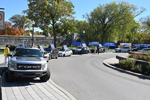 During the event, the practitioners held a car parade to drive around the area. The cars carried signs which had messages about the CCP’s transnational repression.