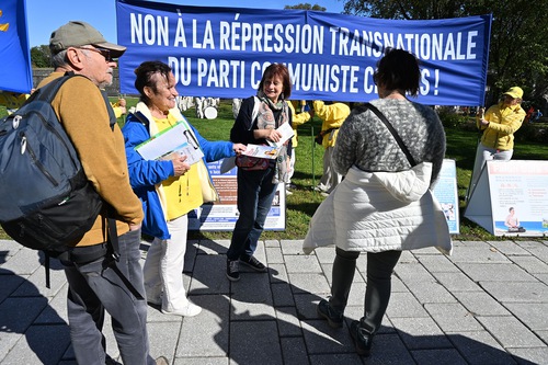 Falun Dafa practitioner Micheline participated in the activity to raise awareness about the CCP’s transnational repression. She said, “I don’t want to lose our rights and freedoms. I don’t want the repression here.”