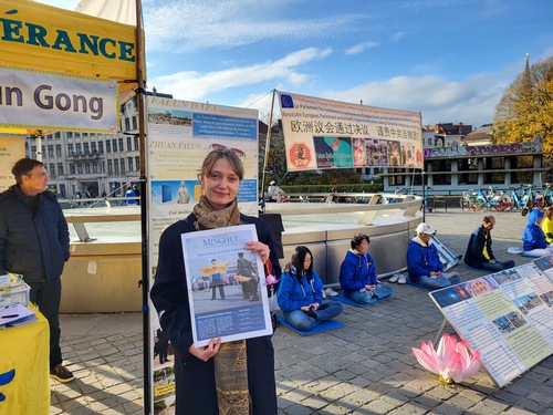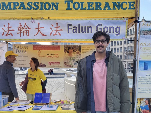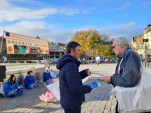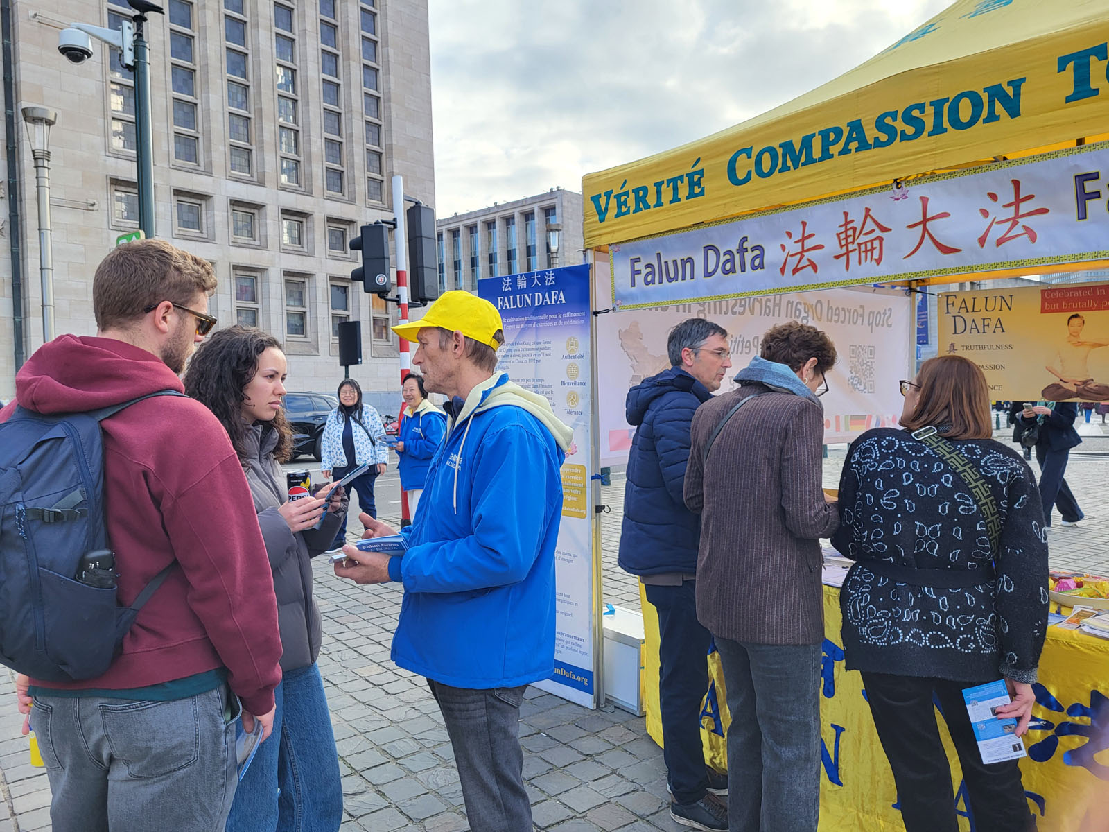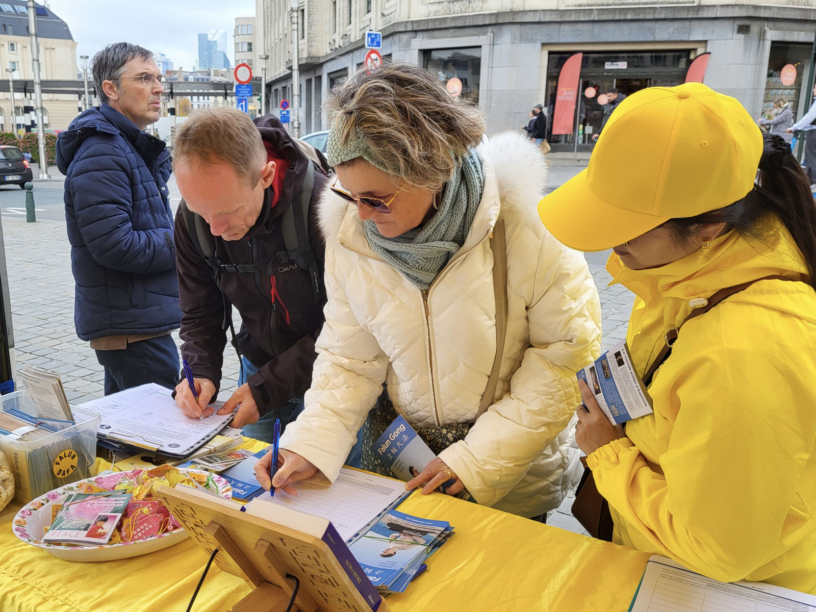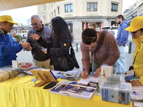 Marine works at the French Culture and International Exchange Association and talked with a practitioner for a long time. She and her friend were visiting Belgium that weekend, and this was the first time either of them had heard about the persecution. After she read the display board, Marine said she thought she should do something, like sign the petition. She said it was important to let more people know about the persecution. “I wish to learn more due to my work,” she said.