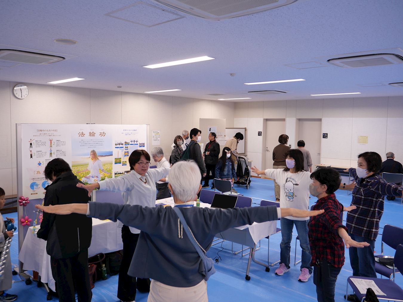 Ms. Kunitomi (right, wearing a black top) learned the Falun Dafa exercises.