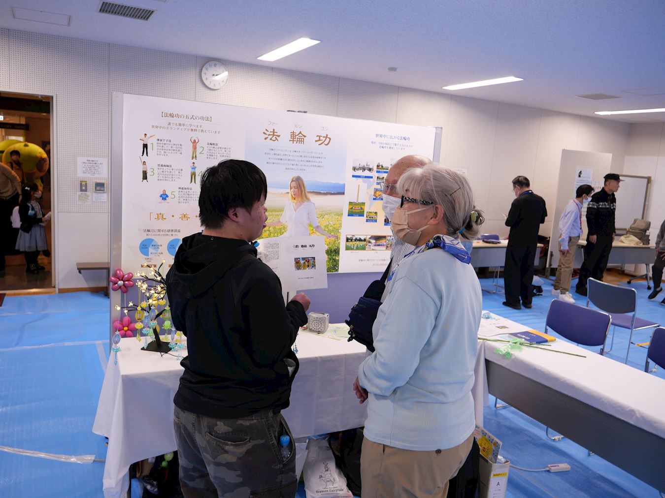Practitioners taught the exercises and talked with visitors at the Goen Rakuichi Fair.