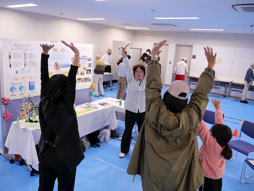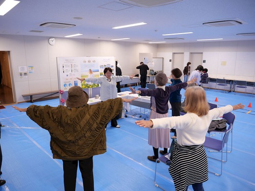 Ms. Yamada (center, in beige) learned the exercises.