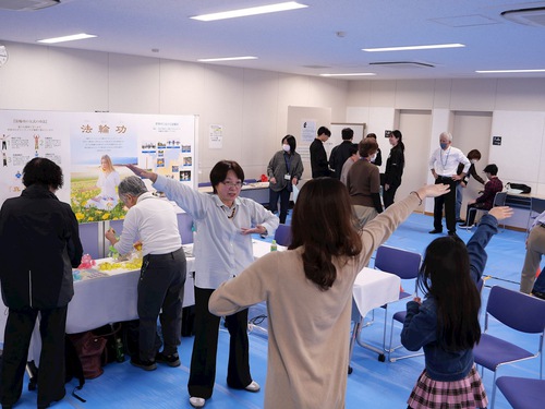 Ms. Yamada smiled, and said, “My body is stretched out, and it feels very comfortable.” After listening to a practitioner describe Falun Dafa’s principles of Truthfulness, Compassion, and Forbearance, she said, “I think it’s very good.”